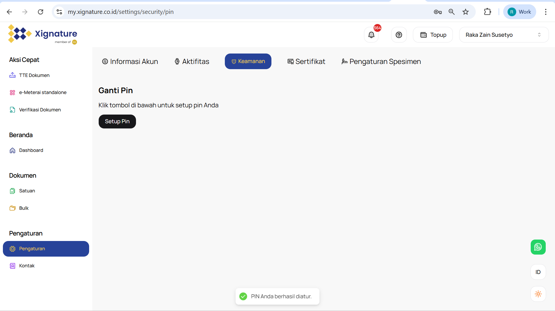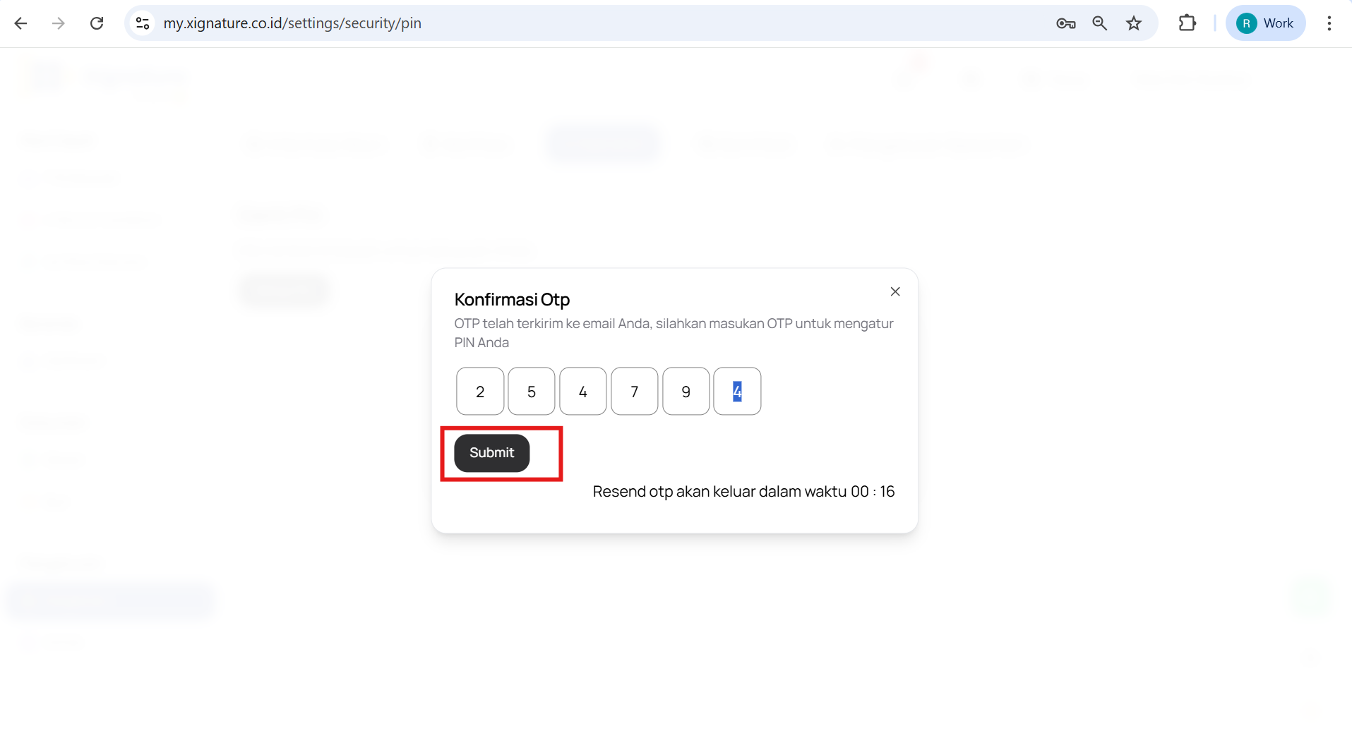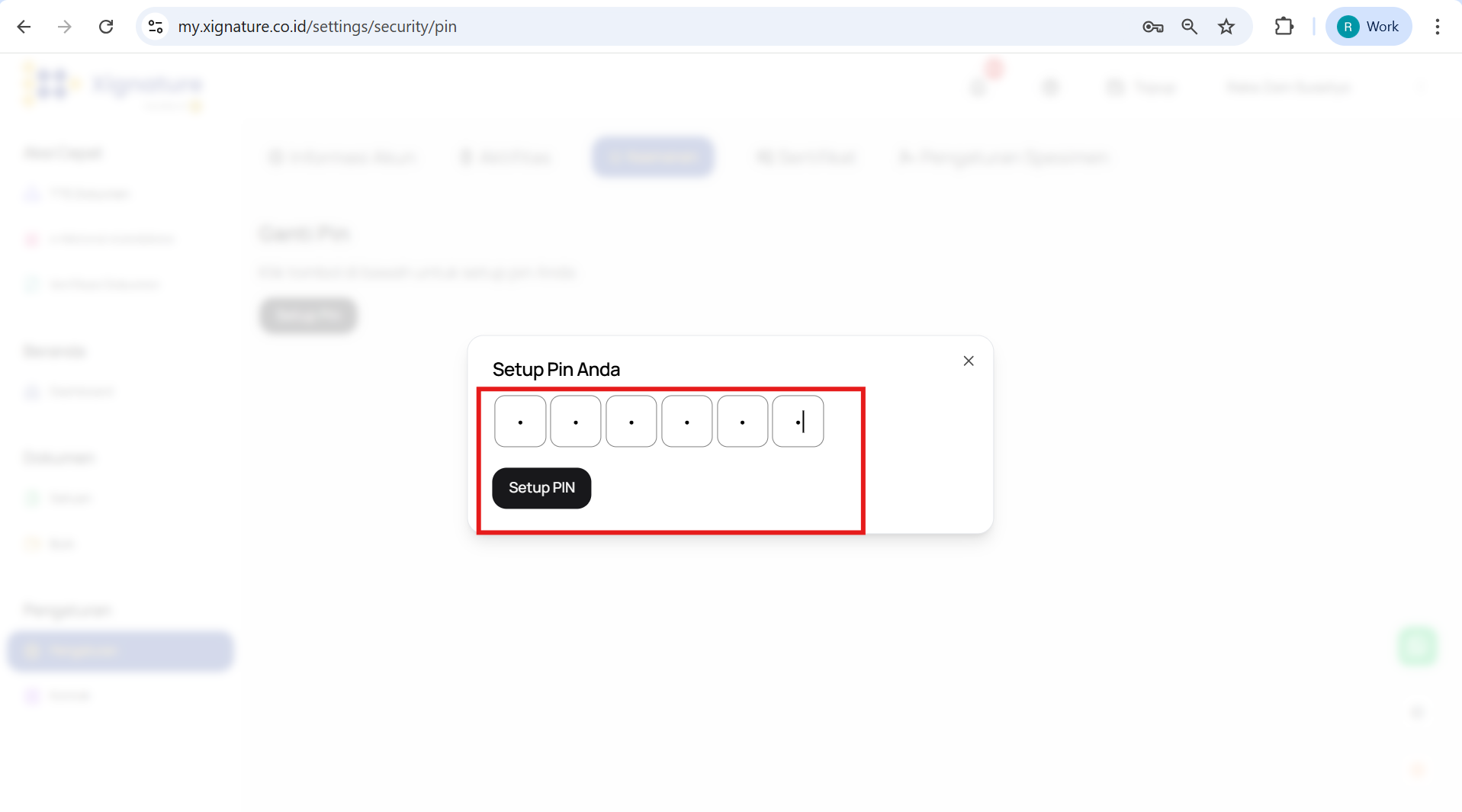 Untuk melakukan perubahan PIN, kami menyarankanAnda untuk melakukannya melalui web app Xignature dengan mengikuti langkah-langkah berikut :