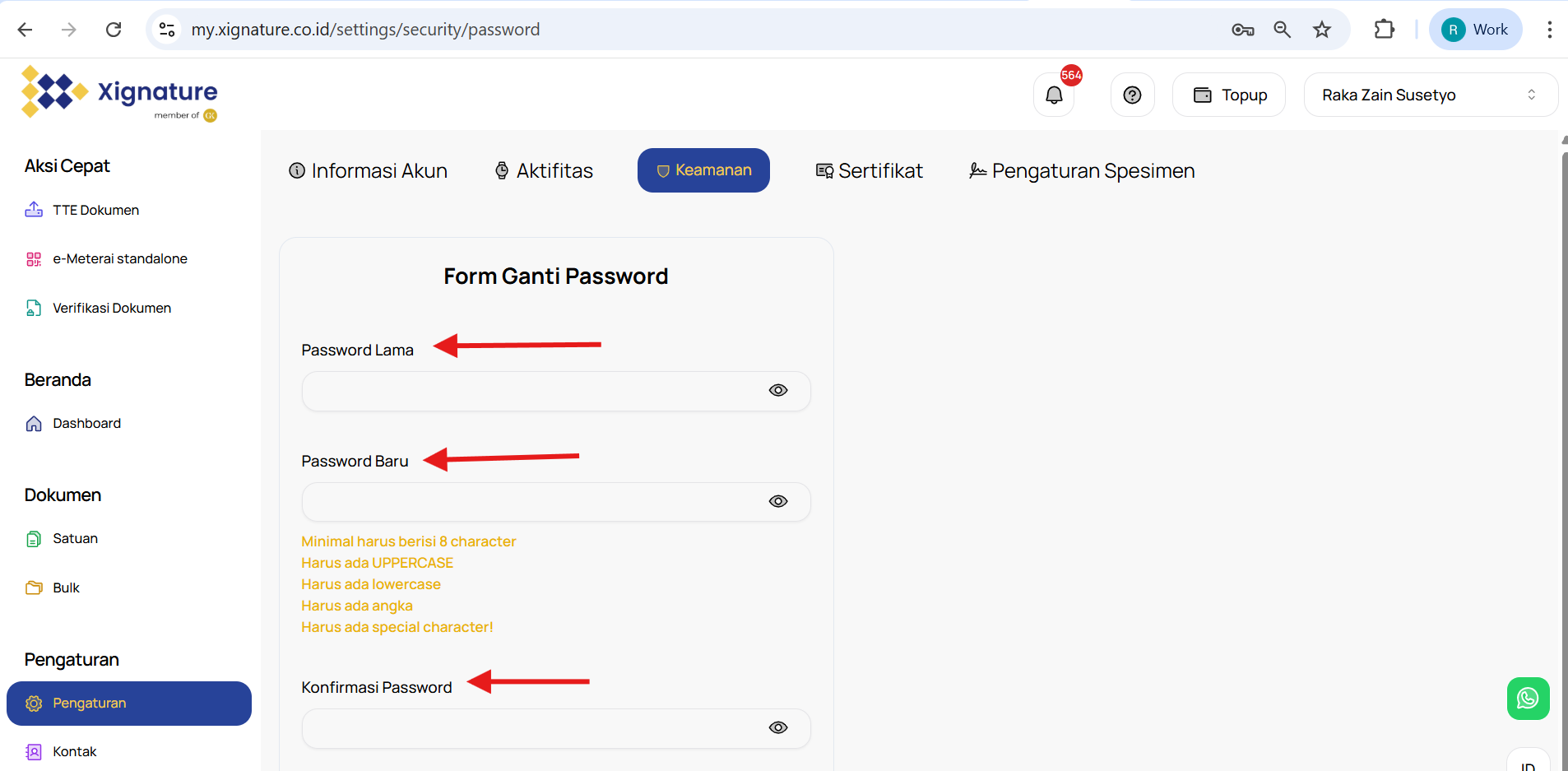 Untuk melakukan perubahan kata sandi, kami menyarankan Anda untuk melakukannya melalui web app Xignature dengan mengikuti langkah-langkah berikut :
