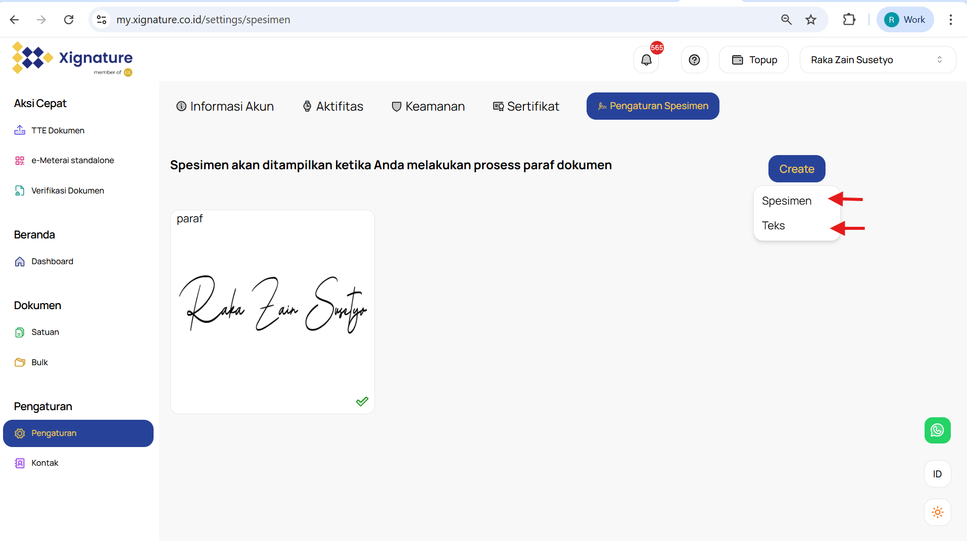 - Klik tombol "Create" untuk membuat paraf