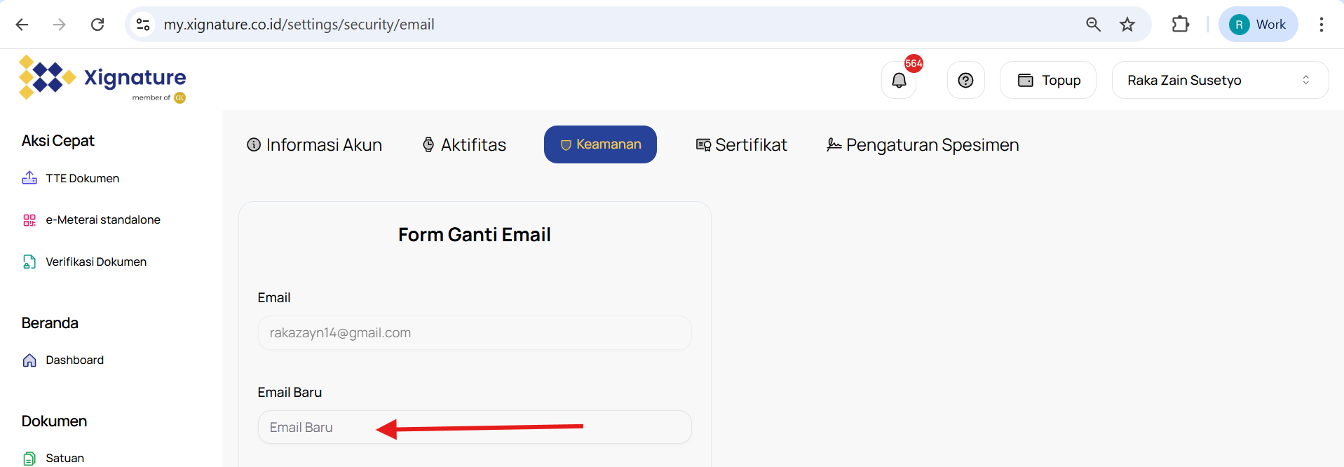 Untuk melakukan perubahan email, kami menyarankan Anda untuk melakukannya melalui web app XIgnature dengan mengikuti langkah-langkah berikut :