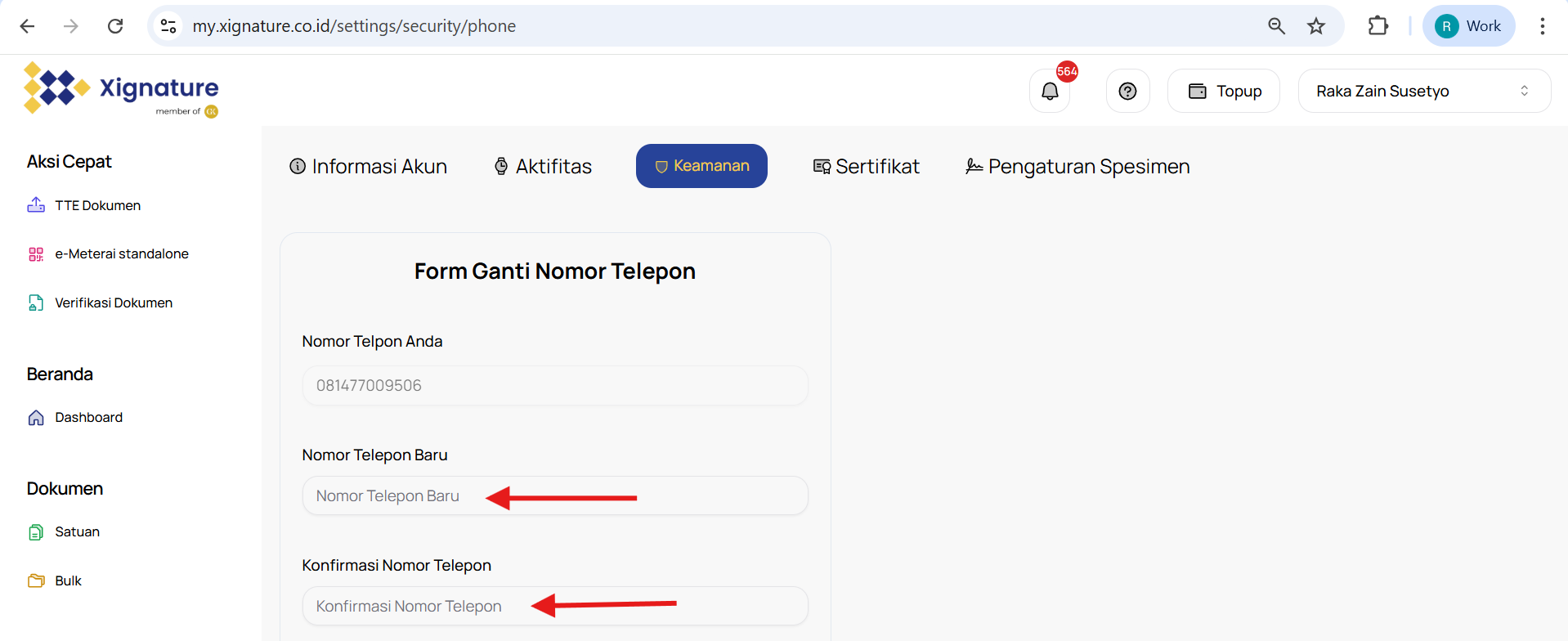 Untuk melakukan perubahan nomor HP, kami menyarankanAnda untuk melakukannya melalui web app Xignature dengan mengikuti langkah-langkah berikut :