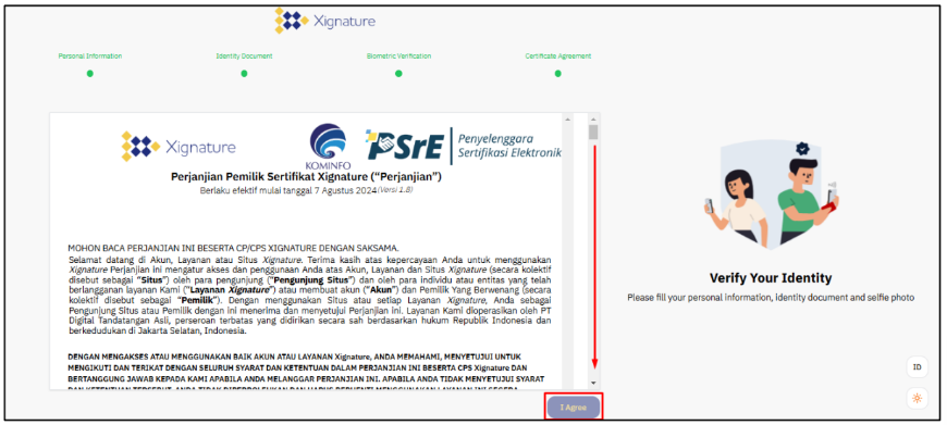 Ikuti langkah-langkah berikut untuk menerbitkan digital sertifikat personal pada akun Xignature: