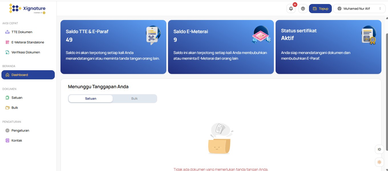 - Setelah Pembayaran Selesai: Sistem akan memulai memproses pembuatan sertifikat diigital Anda.